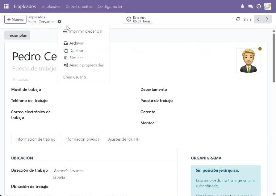 Menú inicio -> Empleados