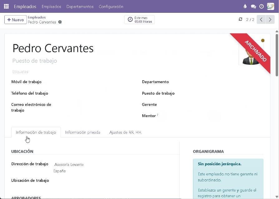 En el formulario con los datos del empleado, clic en