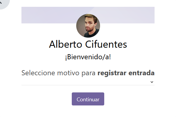 - Para confirmar su registro de entrada/salida Pulse "Continuar" y espere.