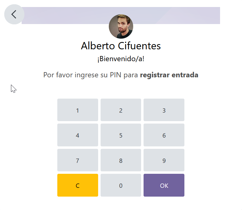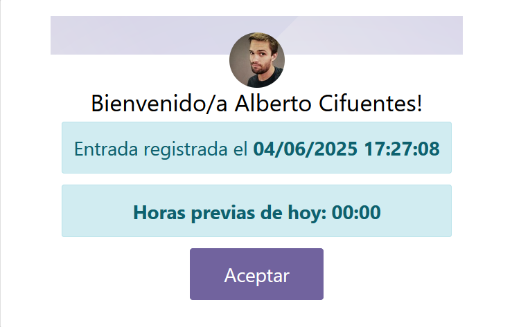- Cada empleado debe pulsar sobre la tarjeta con su nombre.